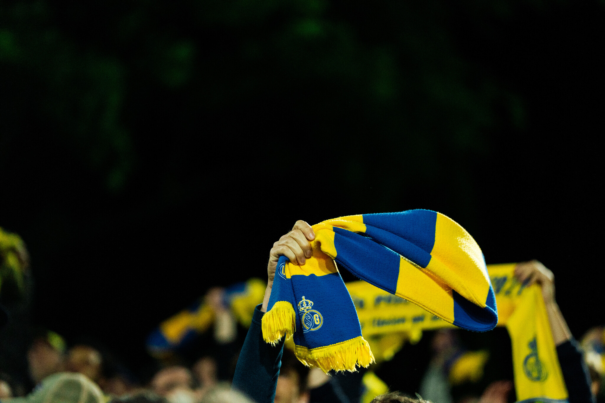 Neem deze sjaal in de kleuren van Royale Union Saint-Gilloise overal met je mee.