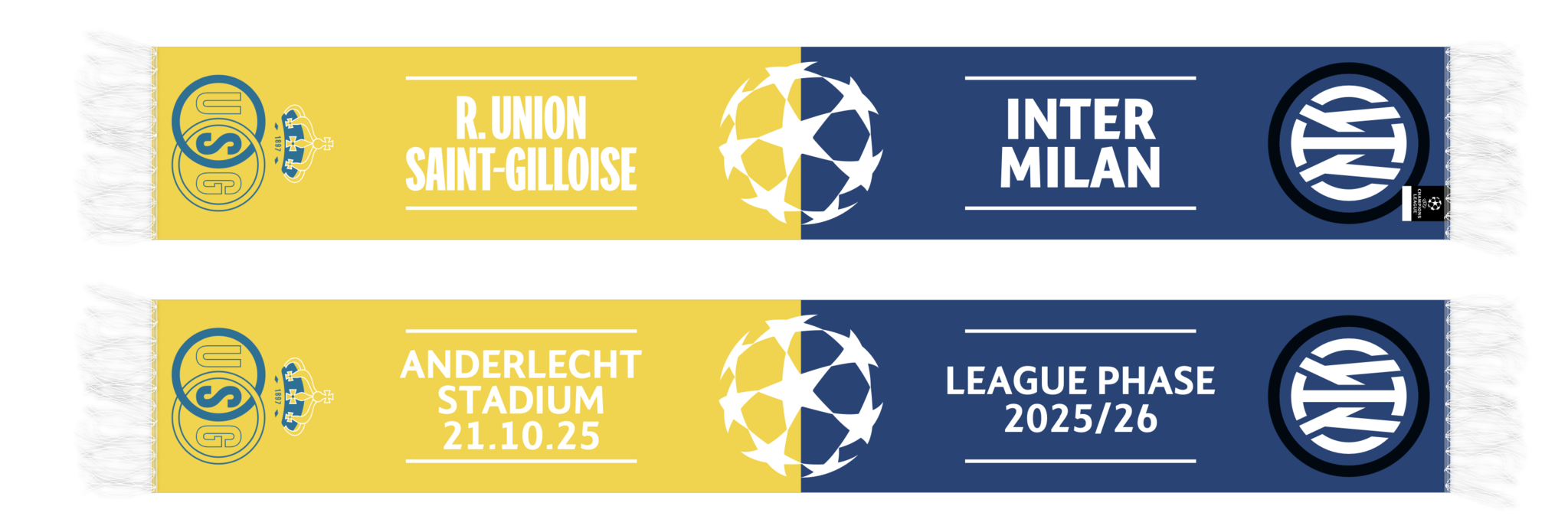 Vier de Champions League-wedstrijd tegen Inter Milaan met de collectorsjaal in de kleuren van beide teams.